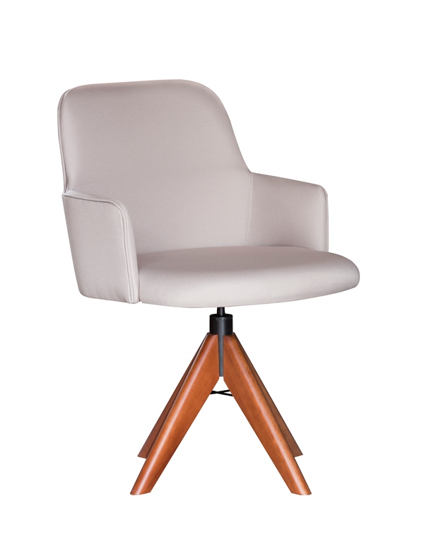 2. Base 4 patas giratória em madeira maciça pintada. Opção de base giratória em alumínio.