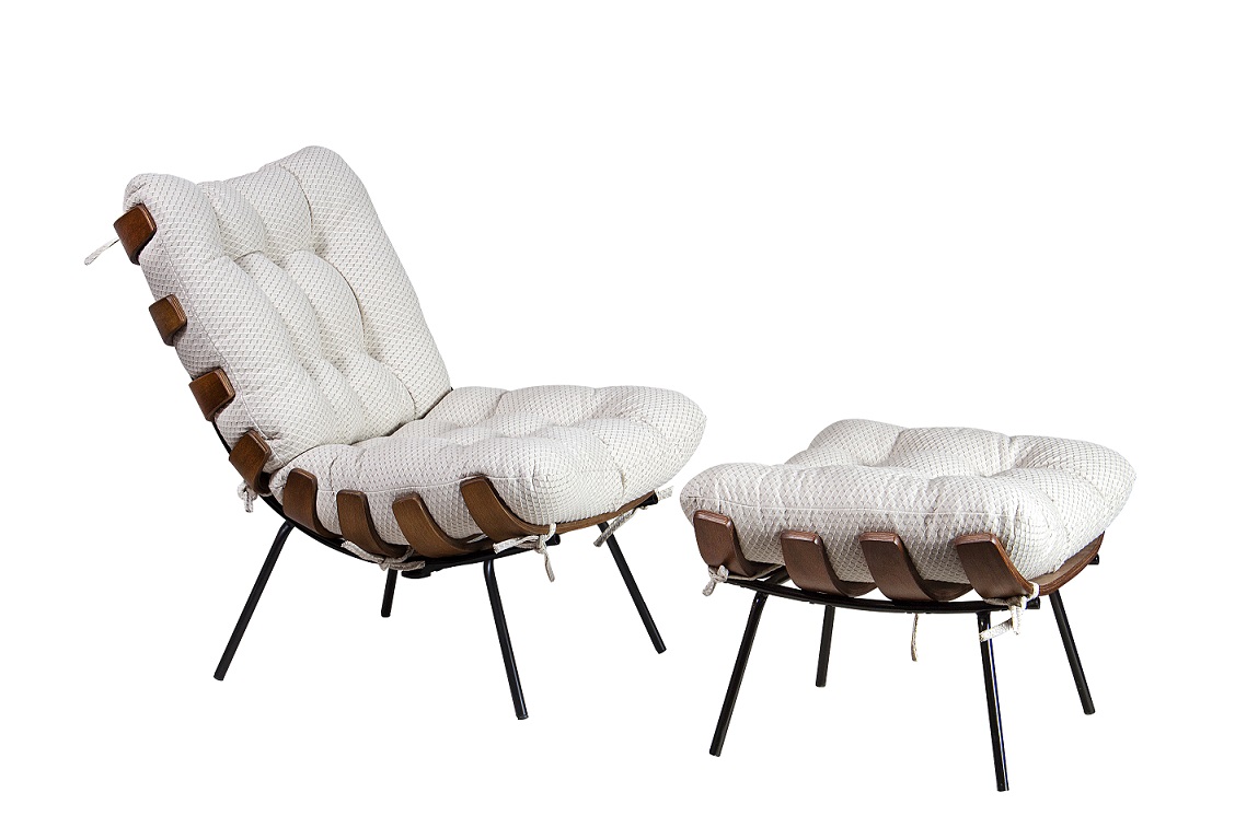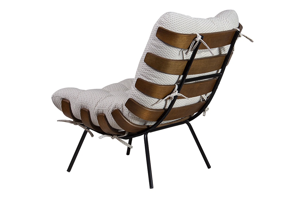 3. Almofadas em fibra siliconizada com acabamento em capitonê.