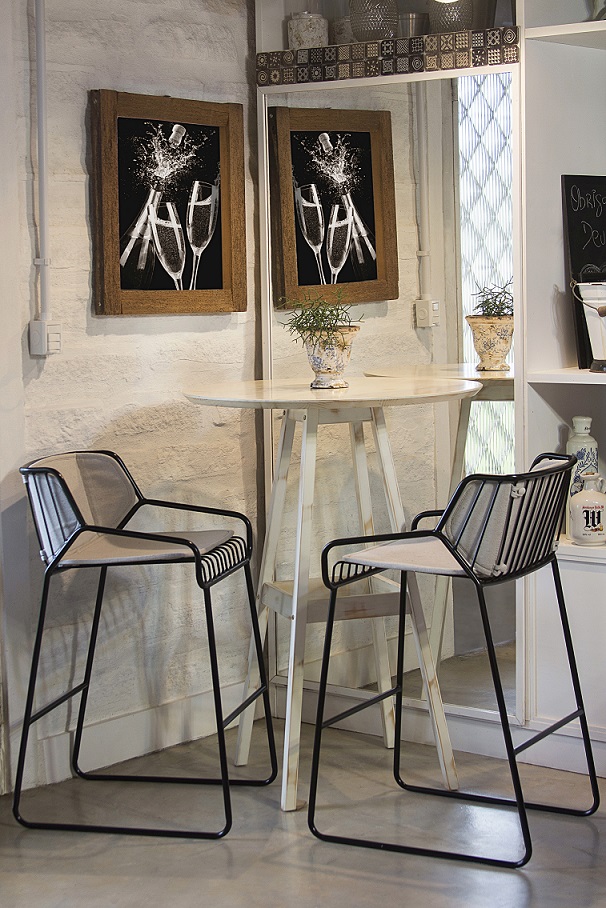 1. Banqueta em ferro aramado, com acabamento em cromo ou pintura epóxi (cor a escolher).